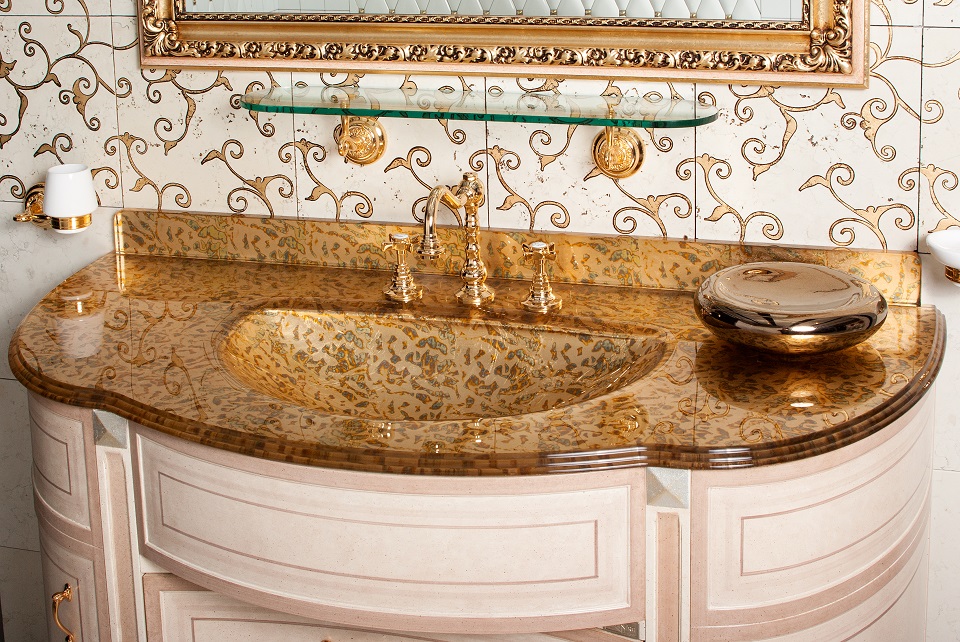 Для сантехники и мебели в классическом стиле характерно обилие рельефных элементов, в какой-то степени напоминающих декор античных колонн. Если это умывальник, то предпочтительнее модель с постаментом или полупостаментом. Возможен также вариант встроенной или накладной раковины в комбинации с филенчатой тумбой на резных ножках. Наиболее гармоничная форма классической ванны – отдельностоящая модель белого тона с цельнолитым основанием или на ножках.
